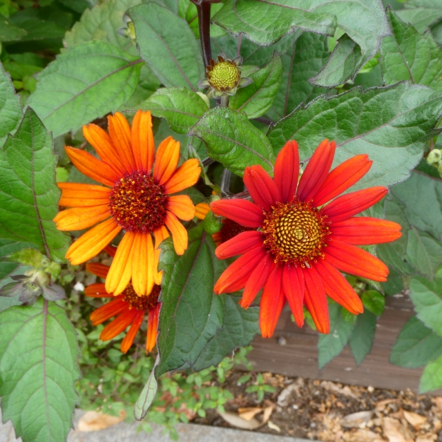 夏に切り戻しておいた株から再び花が咲き、涼しくなってくると葉のブロンズ色もより深みを増します。